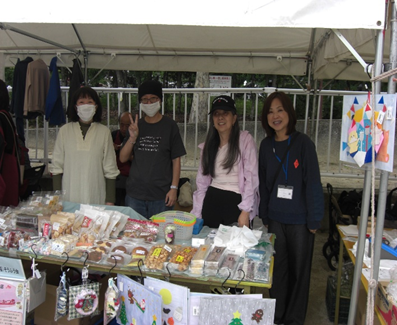 たくさんの手作り商品を持って行き、見えやすいように工夫しながらテーブルに並べ、みんなで役割分担しながら、元気いっぱい販売を頑張りました(^O^)/